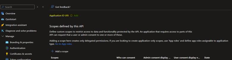 · Navigate to Expose an API section in the Entra application