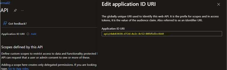 · Click on Add next to Application ID URI in the results blade.